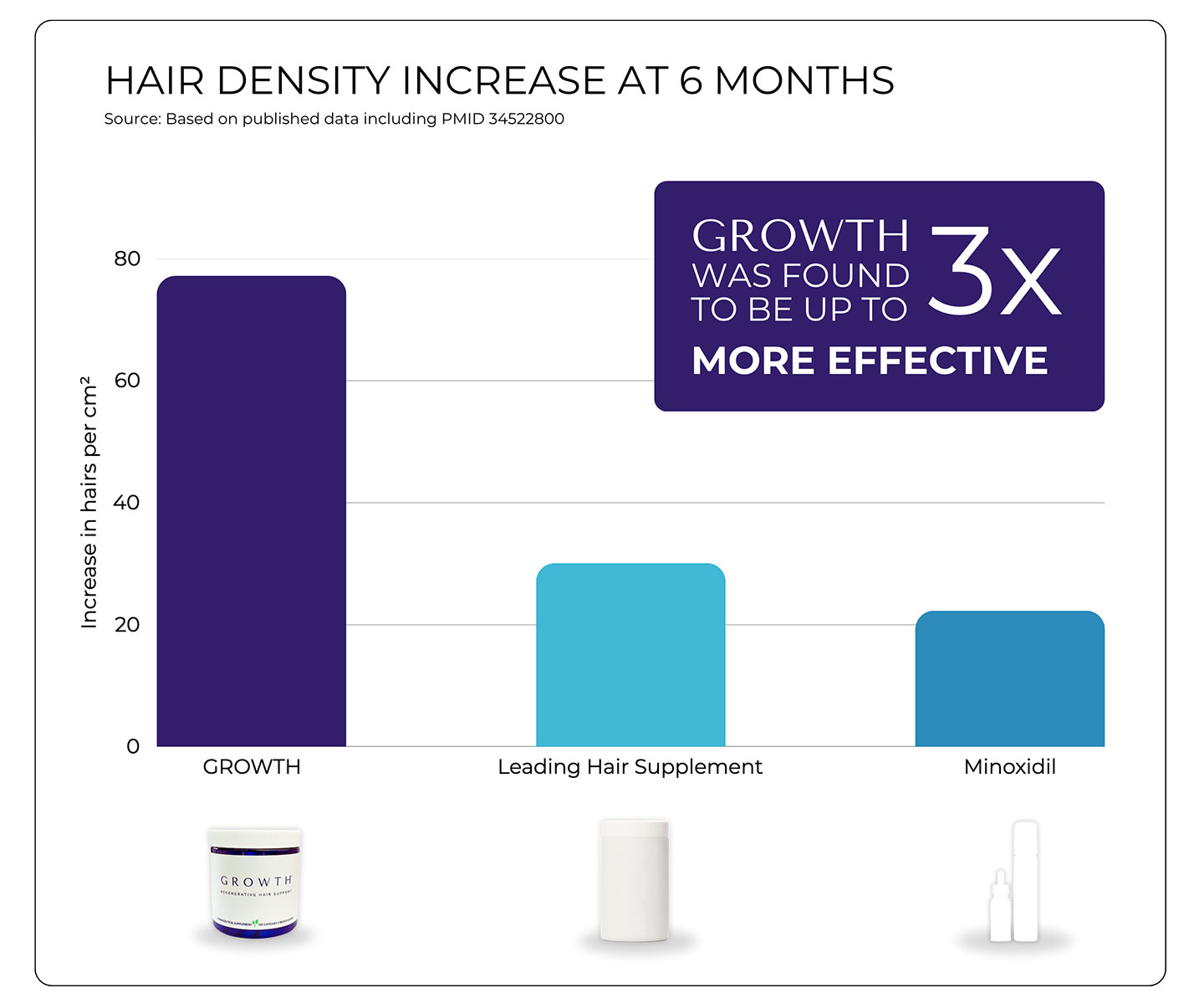 GROWTH is proven to dramatically reduce shedding, improve hair count, hair width and scalp coverage in women and men of all ages and ethnicities.